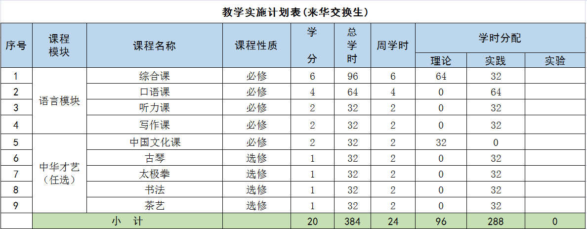 交换生在我校最多可选择18个学分,以下为不满足语言条件者,可选择的汉语语言课程及中国文化课程列表。