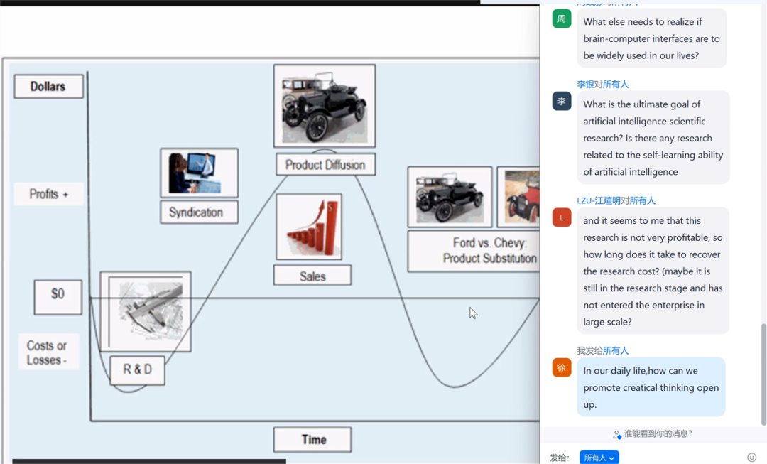 在提问环节,教授详细解答了我问的关于如何转变思维的问题,我在上课过程中提问题其实就是促进思维转变,让我明白了深刻思考对科研的重要性,不失掉好奇、思考与提问。