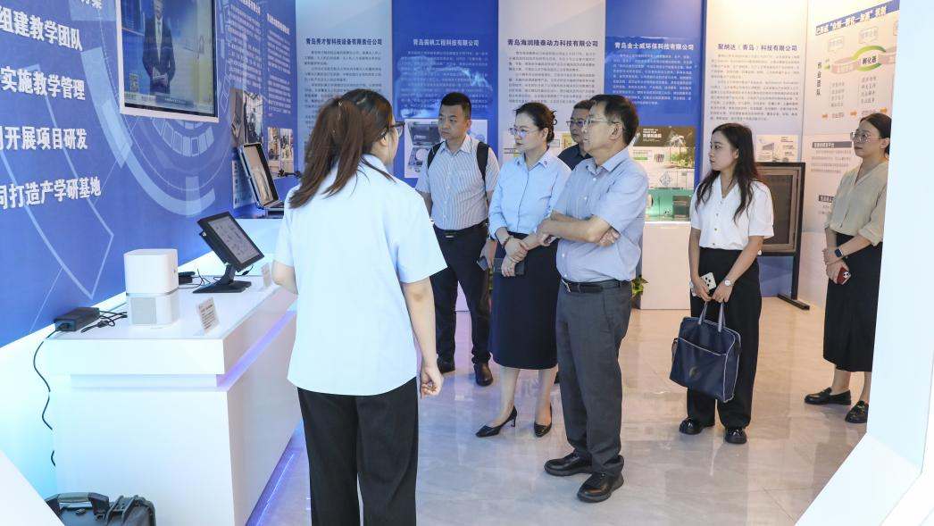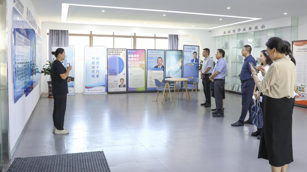 在赵晶晶副校长等人的陪同下,调研组先后参观融媒体中心、未来儿童成长中心与大学生就业创业赋能中心。融媒体中心先进的录制与演播设备给嘉宾留下了深刻印象;未来儿童成长中心的AI早教评测系统和大学生就业创业赋能中心的跨境电商等国家级大创项目获得王胜刚理事长一行的高度评价,称赞我校“校企协同、国际接轨的育人场景鲜活落地”